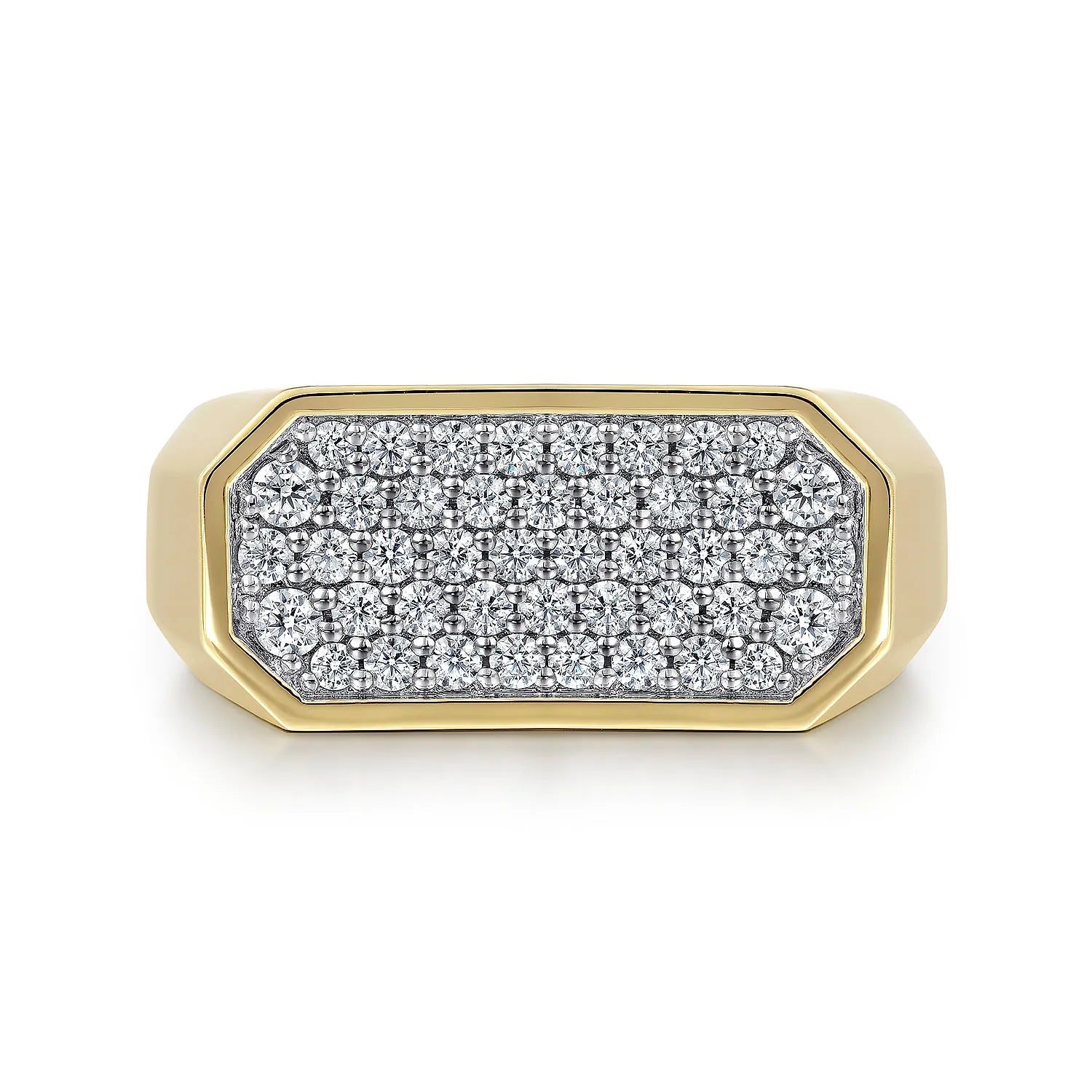 Gabriel & Co. Fashion 14k Yellow Gold Diamond Pavé Men's Ring in Sand Blast Finish