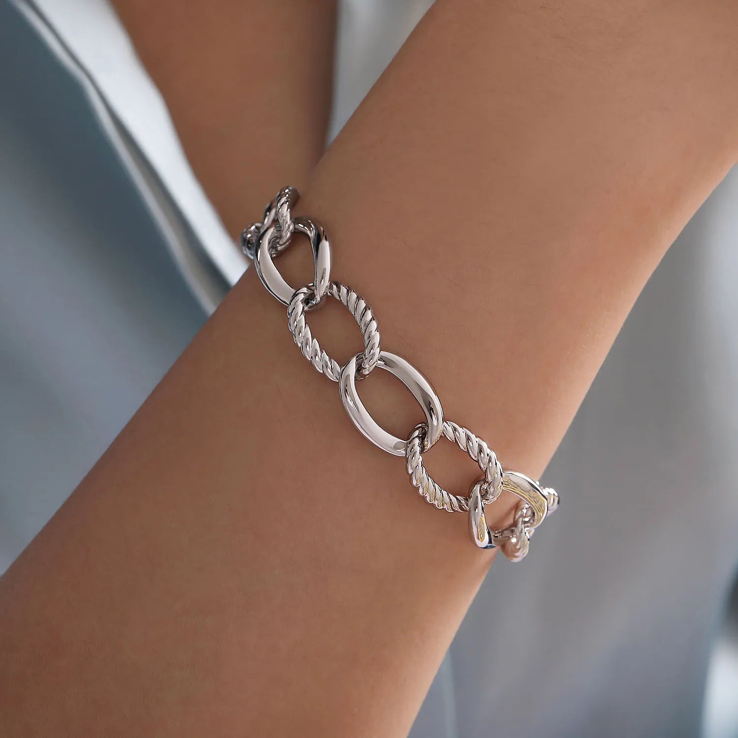 Gabriel & Co. Fashion 925 Sterling Silver Rope Link Chain Bracelet