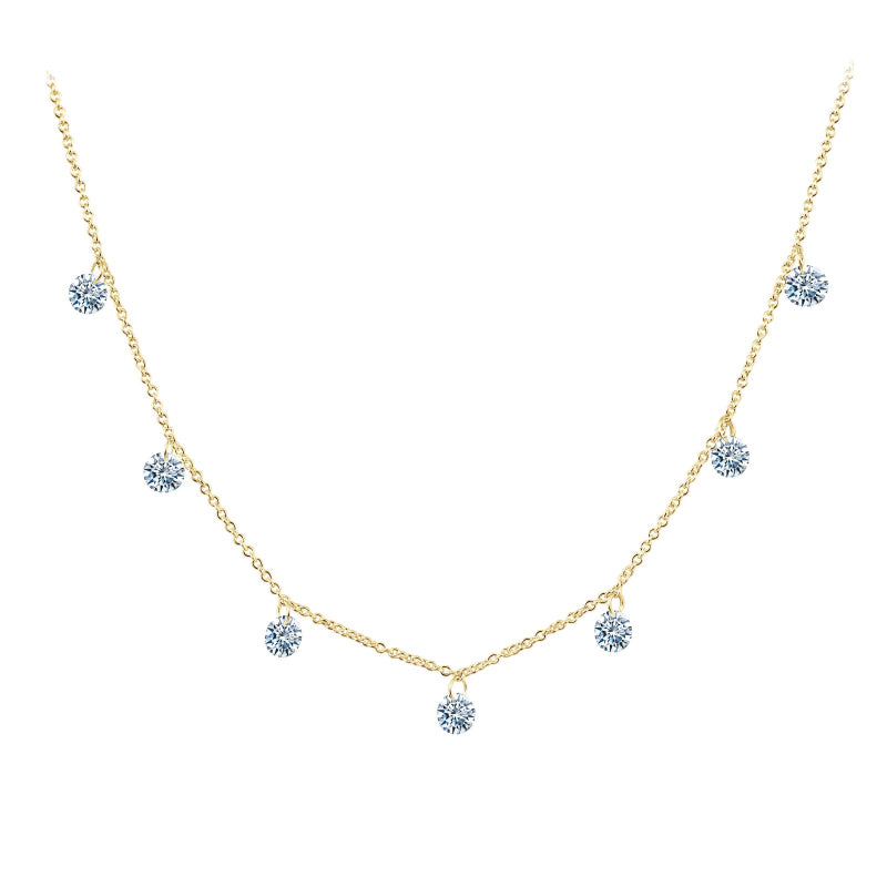 Mesmerizing shimmer. This frameless raindrop necklace features 7 Lassaire simulated diamonds dangled on a chain in sterling silver using Lafonn's exclusive TR Gold, a new and improved plating process that preserves the rich color of gold and enhances the wearability of our gold-plated styles.