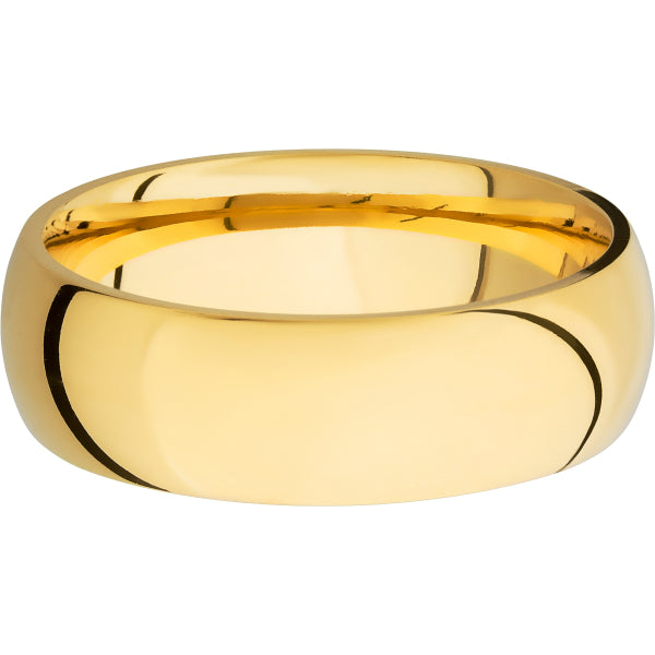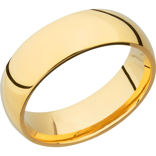 14K Yellow gold 7mm domed band. This beautiful product isn't always in stock. Our online inventory shows everything that we produce and some products need to be made from scratch along with vendor items that we don't produce. We will call or email letting you know if the piece is available or needs to be built along with if the product needs to be sized. Current estimated build times are between 6-8 weeks.