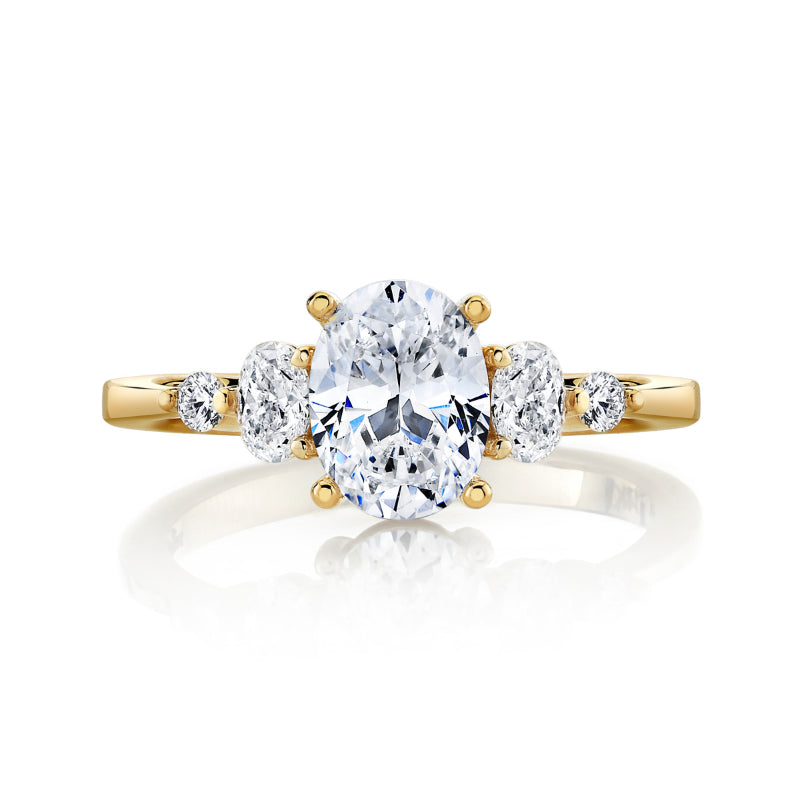 New Classic 5-Stone Oval Engagement. Stone Information: 02-OD 0.25, 02-RD 0.07. Available in Platinum, as well as 18K White, Yellow or Rose Gold.