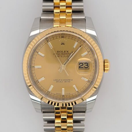 Rolex Oyster Perpetual two-tone with gold face, datejust, comes with box and card.